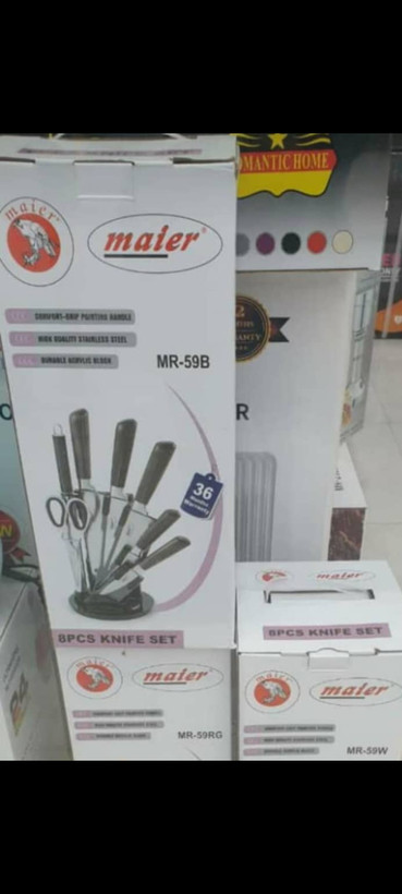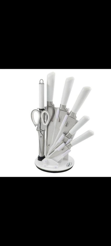 سرویس چاقو مایر مجموعه ۸پارچه شامل چاقو های مختلف کاربردی و باکیفیت است که از فولاد ضد زنگ ساخته شده آن این چاقوها بسیار تیز و مناسب برای برش خرد کردن و پوست کندن انواع مواد غذایی است.